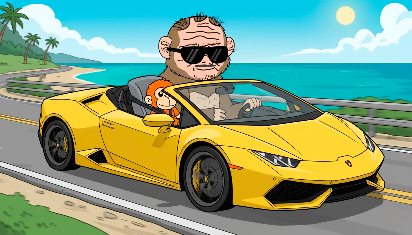 When your meme coin hits and you finally get that yellow Lambo. PUNC and his baby riding in style!