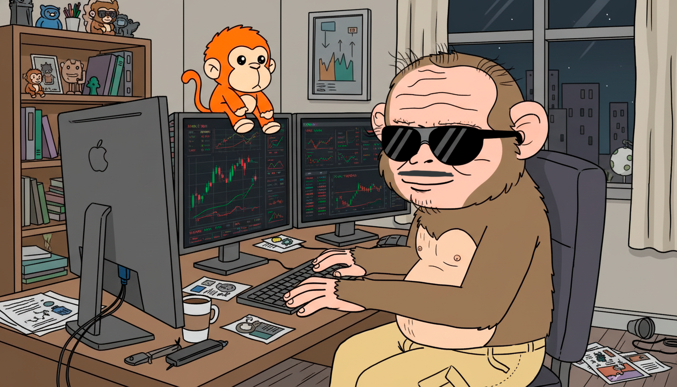 4 monitors, infinite charts, zero sleep. This is the way of the jungle trader. Baby monkey approved!