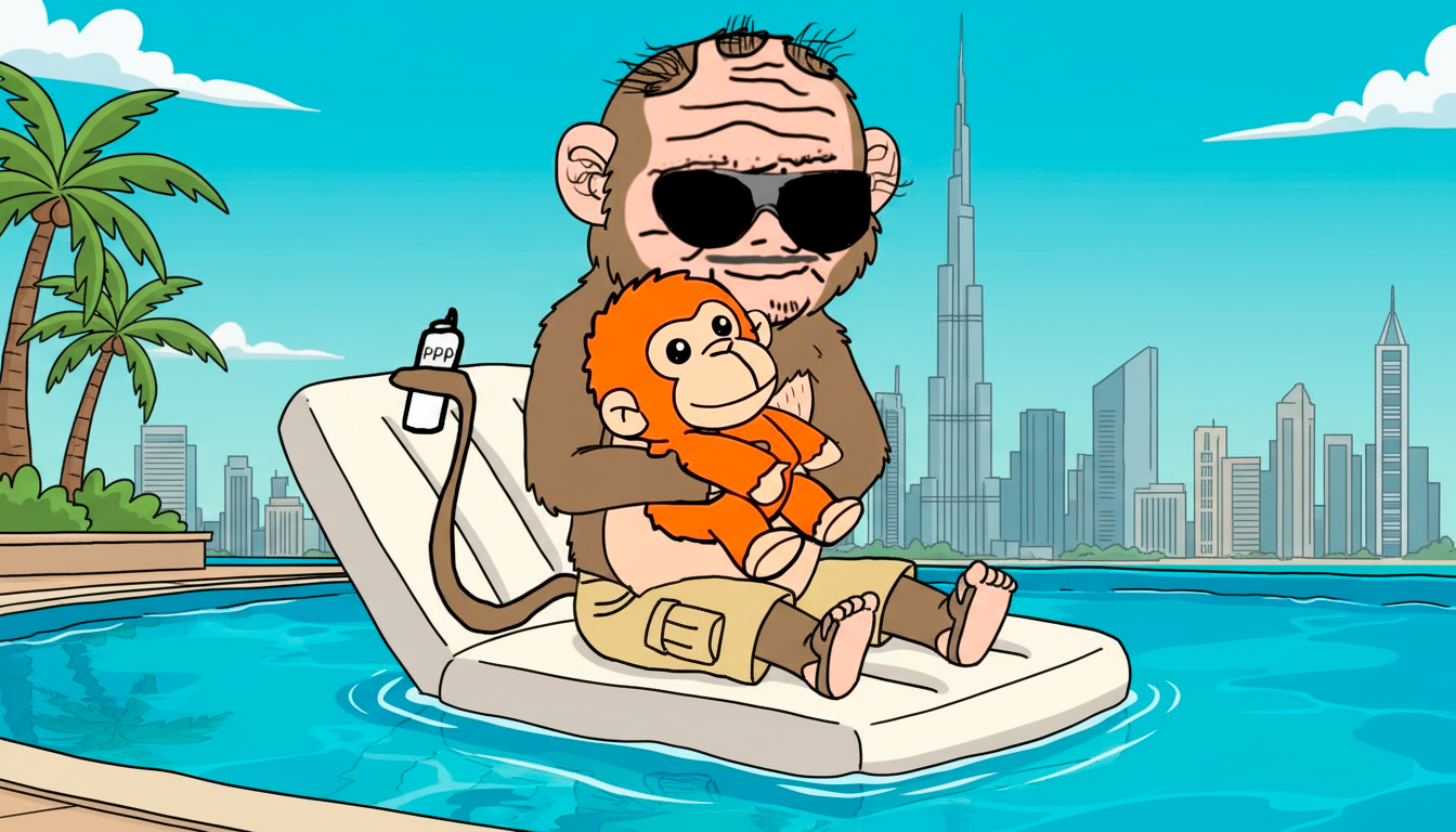 Post-pump chill mode activated. Pool float, baby monkey, Burj Khalifa views. This is what winning looks like!